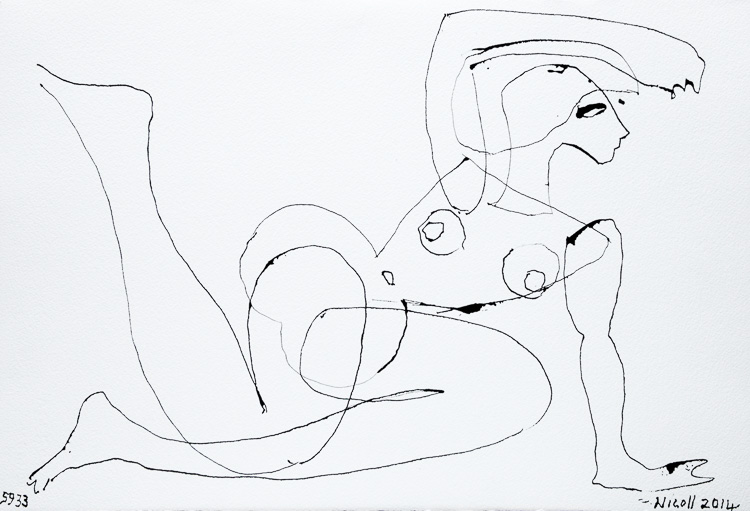 Description:Ink drawing of a figure.