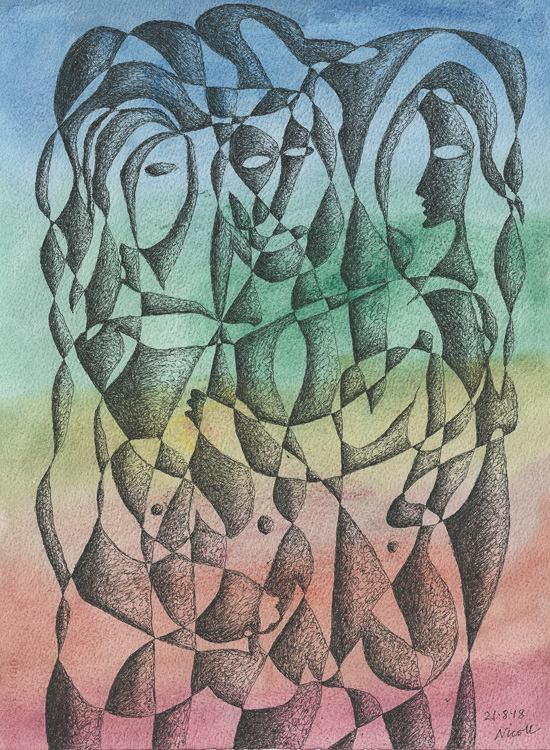 Materials:Ink and watercolour on paper (Arches textured 300gsm).