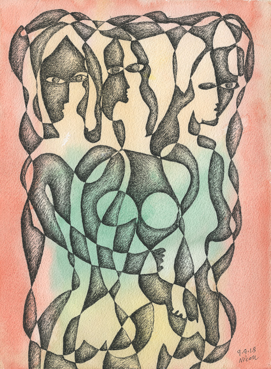 Materials:Ink and watercolour on paper (Arches textured 300gsm).